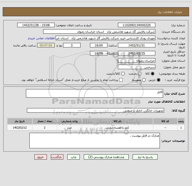 نام دستگاه خریدار:شرکت پالایش گاز شهید هاشمی نژاد استان خراسان رضوی