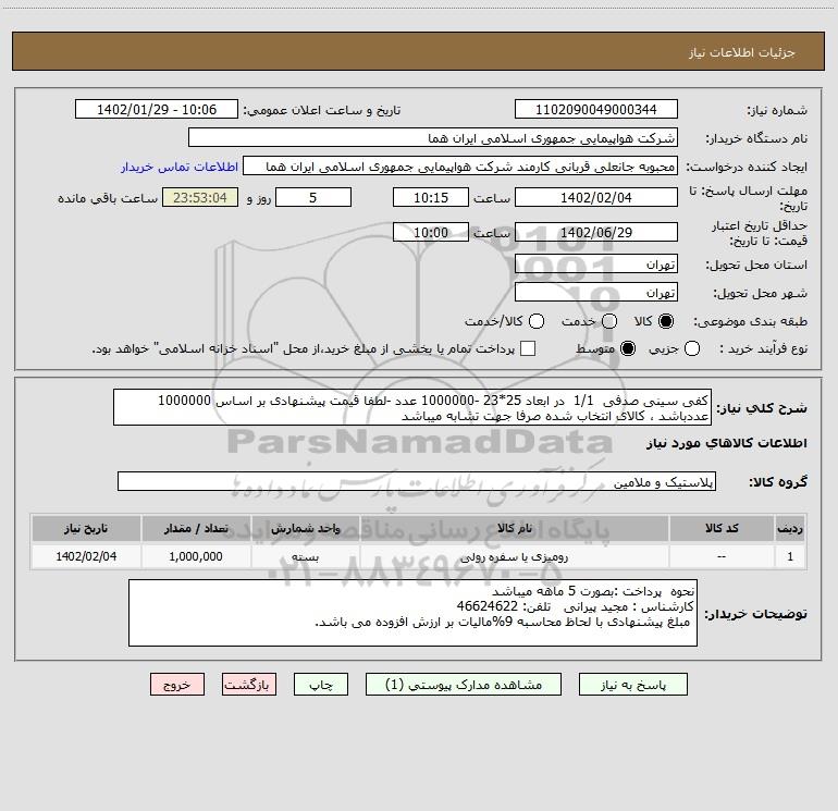 نام دستگاه خریدار:شرکت هواپیمایی جمهوری اسلامی ایران هما