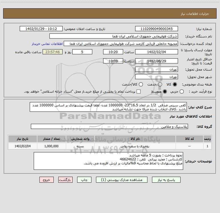 نام دستگاه خریدار:شرکت هواپیمایی جمهوری اسلامی ایران هما
