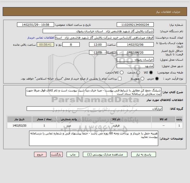 نام دستگاه خریدار:شرکت پالایش گاز شهید هاشمی نژاد استان خراسان رضوی