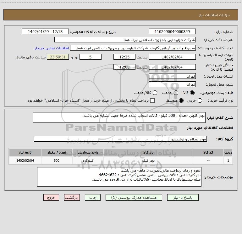نام دستگاه خریدار:شرکت هواپیمایی جمهوری اسلامی ایران هما