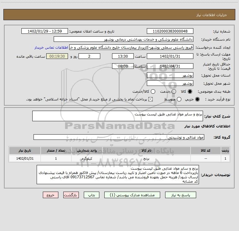 | 1 | -- | برنج | کیلوگرم | 1 | 1402/01/31 |