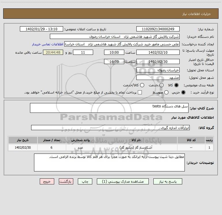 نام دستگاه خریدار:شرکت پالایش گاز شهید هاشمی نژاد استان خراسان رضوی