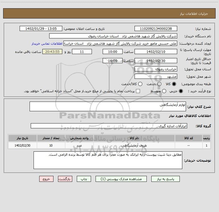 نام دستگاه خریدار:شرکت پالایش گاز شهید هاشمی نژاد استان خراسان رضوی