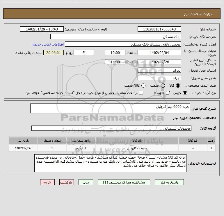 شرح کلی نیاز: خرید 6000 لیتر گازوئیل