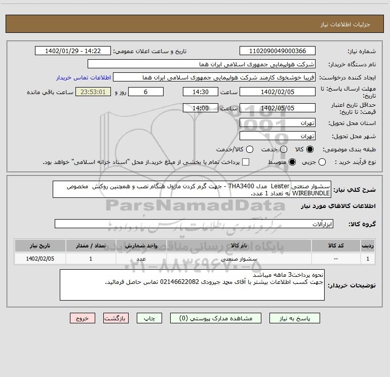 نام دستگاه خریدار:شرکت هواپیمایی جمهوری اسلامی ایران هما