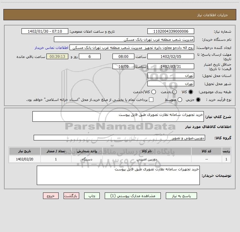 نام دستگاه خریدار:مدیریت شعب منطقه غرب تهران بانک مسکن