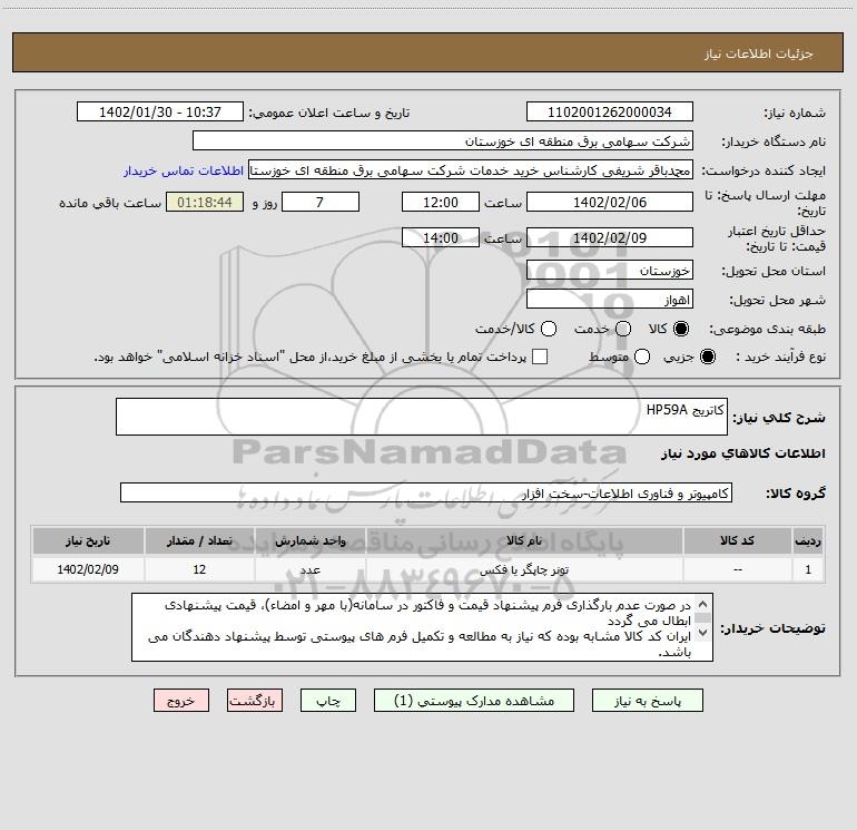 نام دستگاه خریدار:شرکت سهامی برق منطقه ای خوزستان