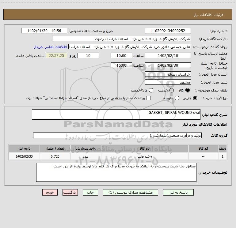 نام دستگاه خریدار:شرکت پالایش گاز شهید هاشمی نژاد استان خراسان رضوی