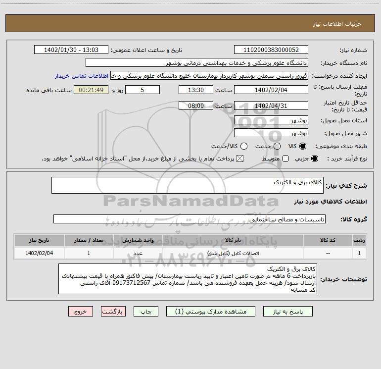 شرح کلی نیاز: کالای برق و الکتریک