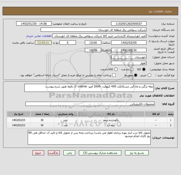 نام دستگاه خریدار:شرکت سهامی برق منطقه ای خوزستان