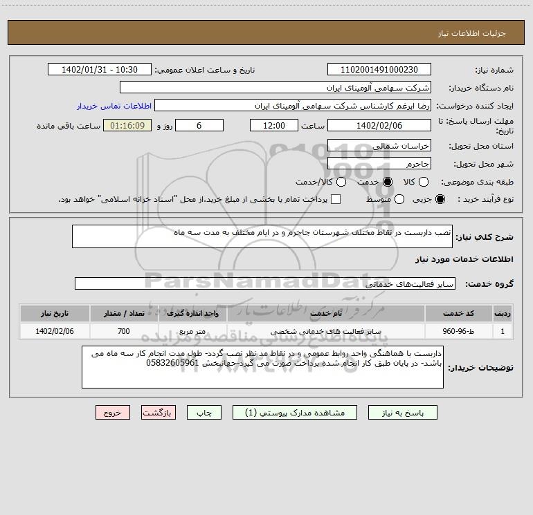 شرح کلی نیاز: نصب داربست در نقاط مختلف شهرستان جاجرم و در ایام مختلف به مدت سه ماه