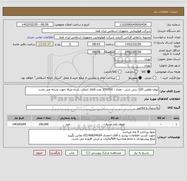نام دستگاه خریدار:شرکت هواپیمایی جمهوری اسلامی ایران هما