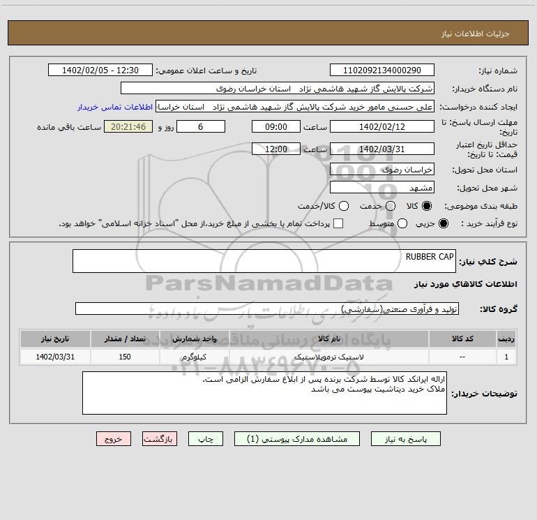 نام دستگاه خریدار:شرکت پالایش گاز شهید هاشمی نژاد استان خراسان رضوی