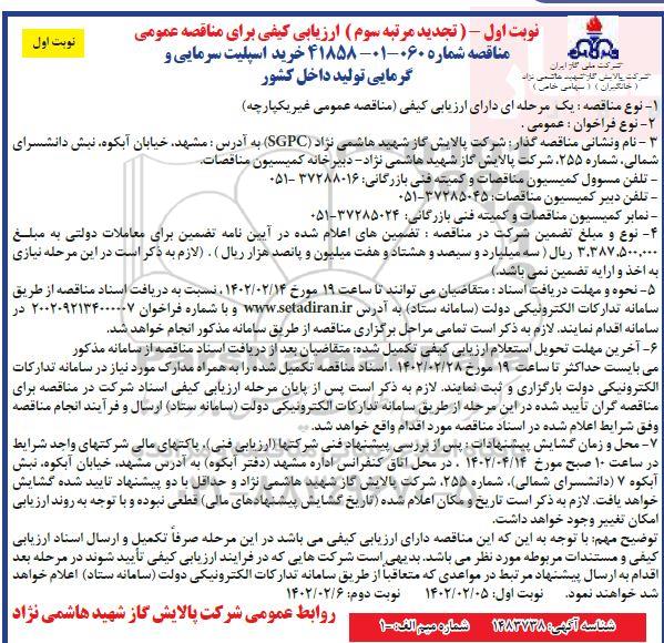 تجدید مرتبه سوم- مناقصه شماره : 060-01-41858 نوبت اول ؟