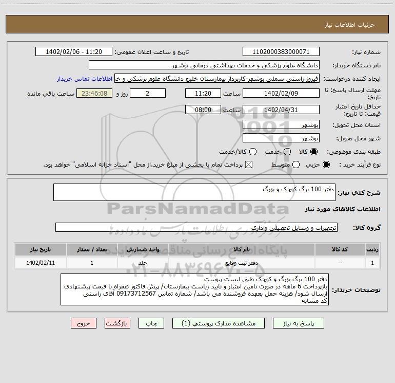 شرح کلی نیاز: دفتر 100 برگ کوچک و بزرگ