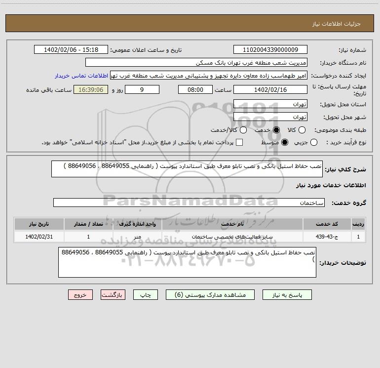 استعلام نصب حفاظ استیل بانکی و نصب تابلو معرف طبق استاندارد پیوست ( راهنمایی 88649055 ، 88649056 ), استعلام نصب حفاظ استیل بانکی و نصب تابلو معرف طبق استاندارد پیوست ( راهنمایی 88649055 ، 88649056 )