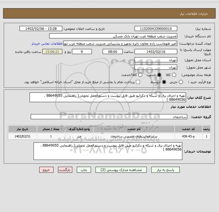 استعلام تهیه و اجرای برق و شبکه و دکراتیو طبق فایل پیوست و دستورالعمل تحویلی( راهنمایی 88649055 ، 88649056 ), استعلام تهیه و اجرای برق و شبکه و دکراتیو طبق فایل پیوست و دستورالعمل تحویلی( راهنمایی 88649055 ، 88649056 )