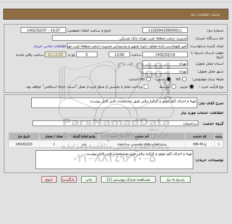 نام دستگاه خریدار:مدیریت شعب منطقه غرب تهران بانک مسکن