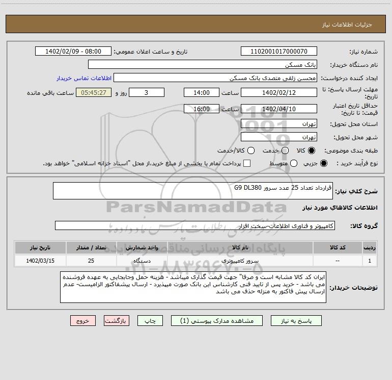 شرح کلی نیاز: قرارداد تعداد 25 عدد سرور G9 DL380