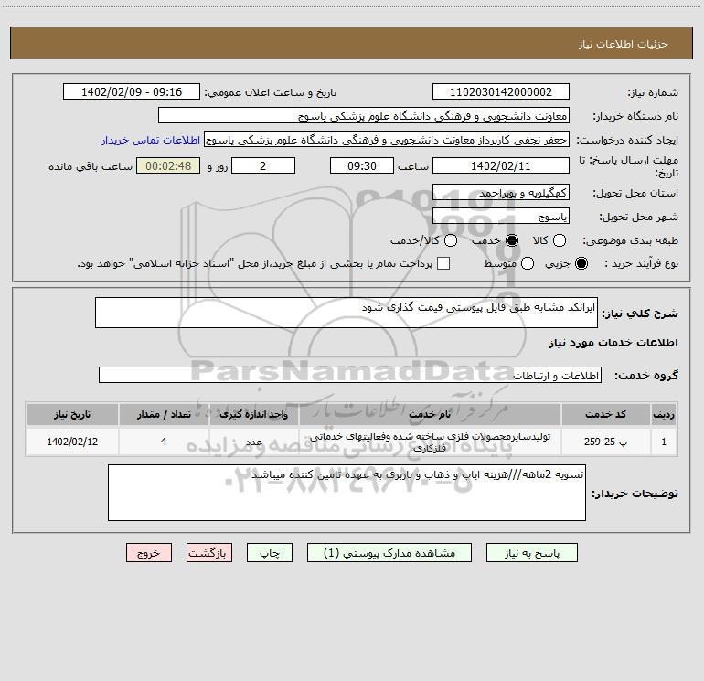 نام دستگاه خریدار:معاونت دانشجویی و فرهنگی دانشگاه علوم پزشکی یاسوج