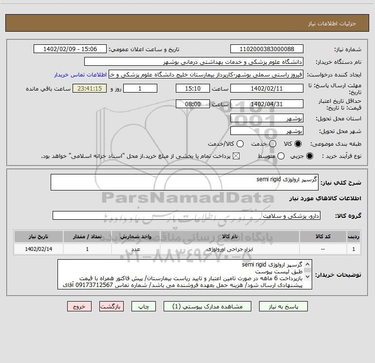 شرح کلی نیاز: گرسپر ارولوژی semi rigid