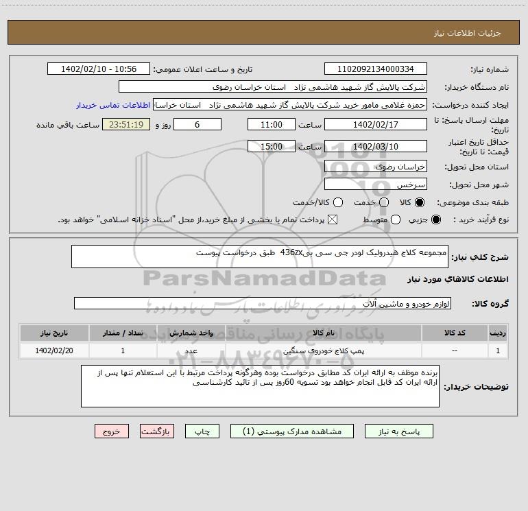 شرح کلی نیاز: مجموعه کلاچ هیدرولیک لودر جی سی بی436zx طبق درخواست پیوست