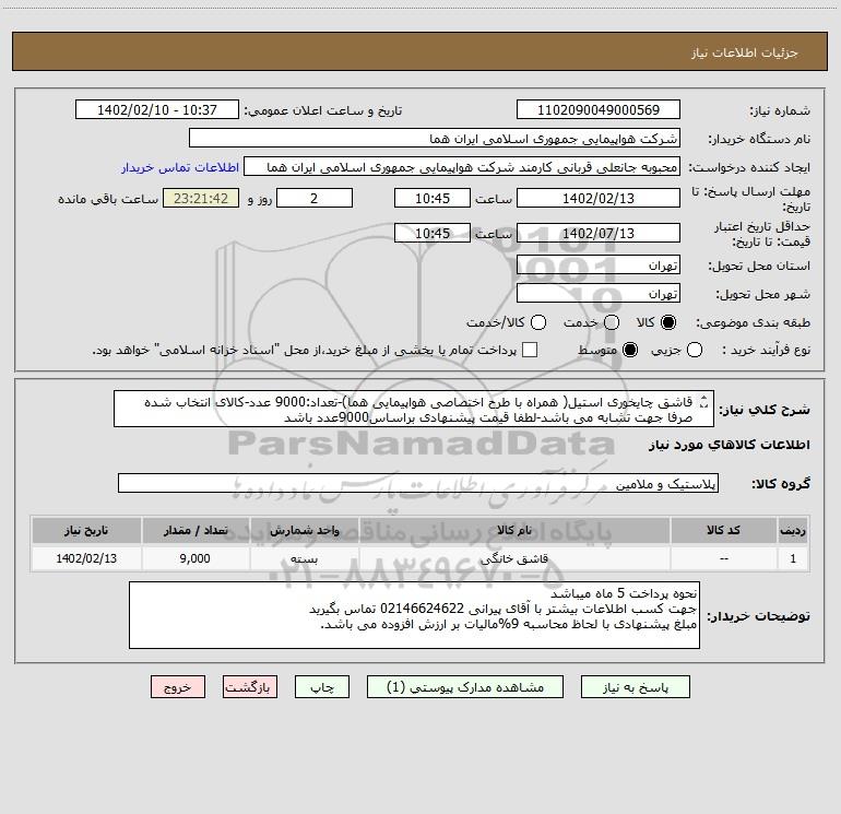 نام دستگاه خریدار:شرکت هواپیمایی جمهوری اسلامی ایران هما