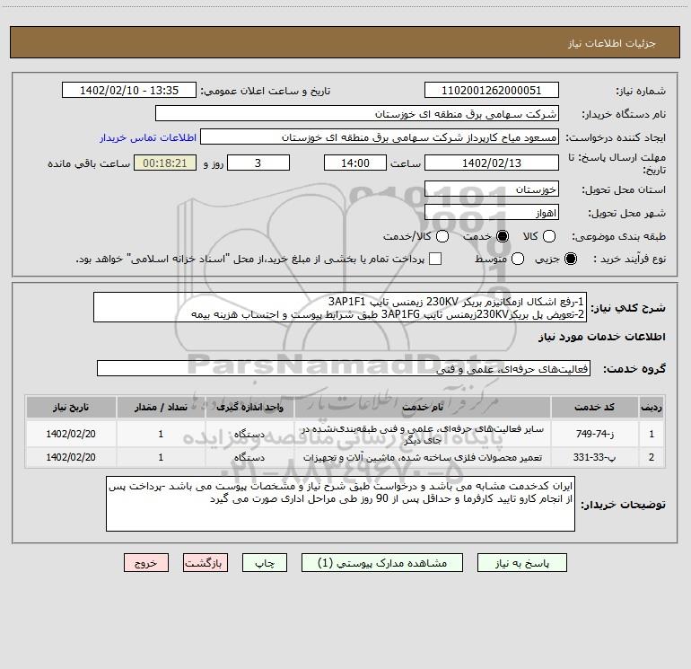 شرح کلی نیاز: 1-رفع اشکال ازمکانیزم بریکر 230KV زیمنس تایپ 3AP1F1 2-تعویض پل بریکر230KVزیمنس تایپ 3AP1FG طبق شرایط پیوست و احتساب هزینه بیمه
