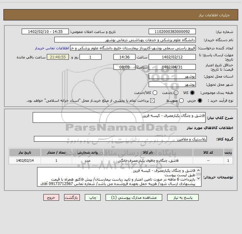 شرح کلی نیاز: قاشق و چنگال یکبارمصرف - کیسه فریزر
