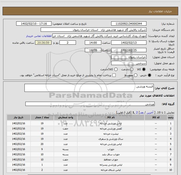 نام دستگاه خریدار:شرکت پالایش گاز شهید هاشمی نژاد استان خراسان رضوی