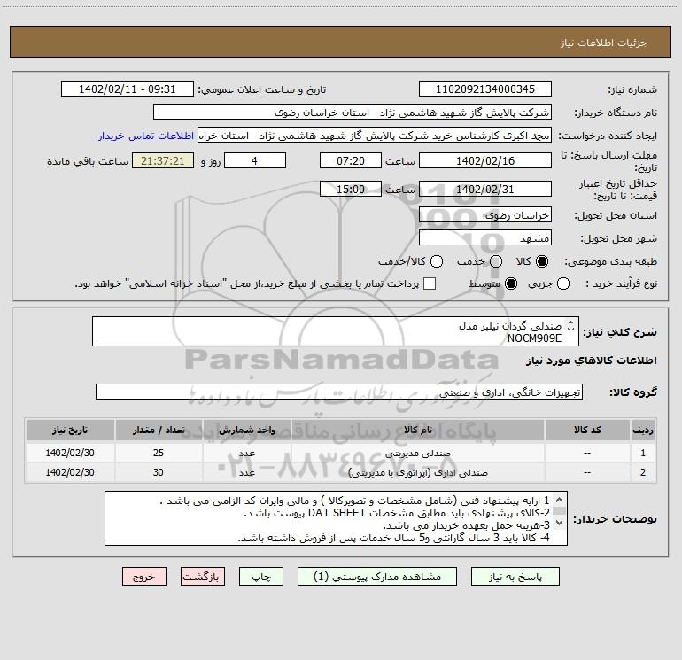 نام دستگاه خریدار:شرکت پالایش گاز شهید هاشمی نژاد استان خراسان رضوی