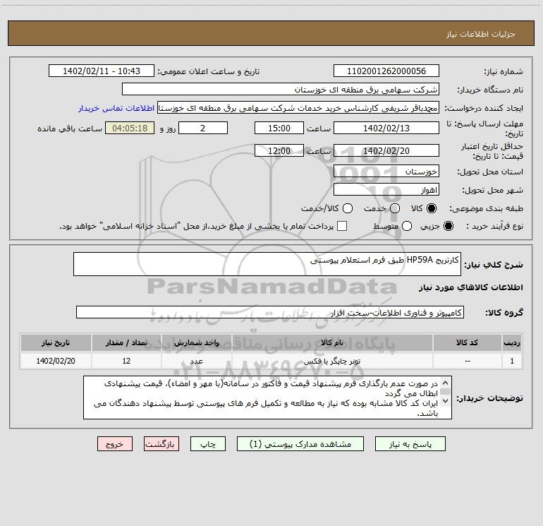 استعلام کارتریج HP59A طبق فرم استعلام پیوستی, استعلام کارتریج HP59A طبق فرم استعلام پیوستی