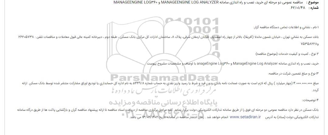 مناقصه عمومی دو مرحله ای خرید، نصب و راه اندازی سامانه MANAGEENGINE LOG ANALYZER و MANAGEENGINE LOG360 ؟