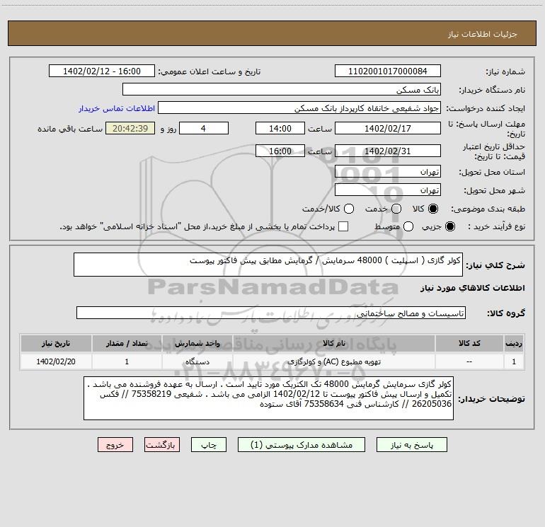 شرح کلی نیاز: کولر گازی ( اسپلیت ) 48000 سرمایش / گرمایش مطابق پیش فاکتور پیوست