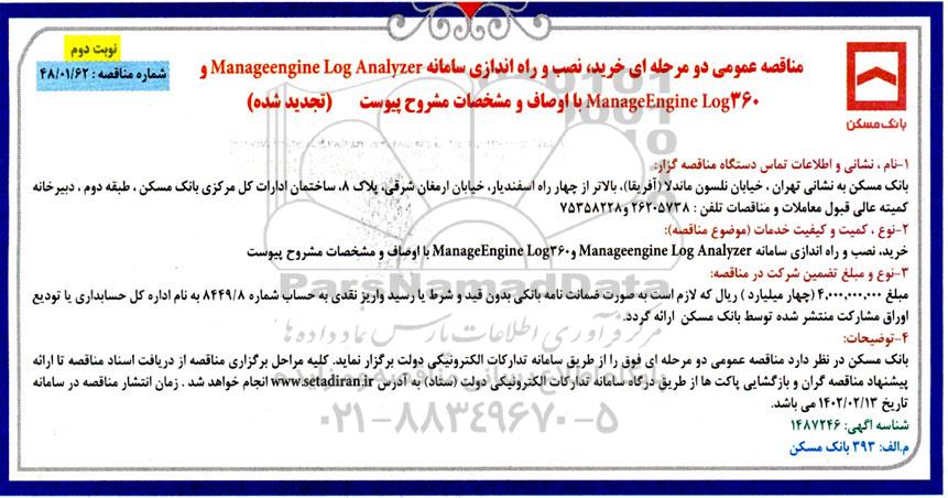 مناقصه خرید، نصب و راه اندازی سامانه MANAGEENGINE LOG ANALYZER .... نوبت دوم, مناقصه خرید، نصب و راه اندازی سامانه MANAGEENGINE LOG ANALYZER .... نوبت دوم