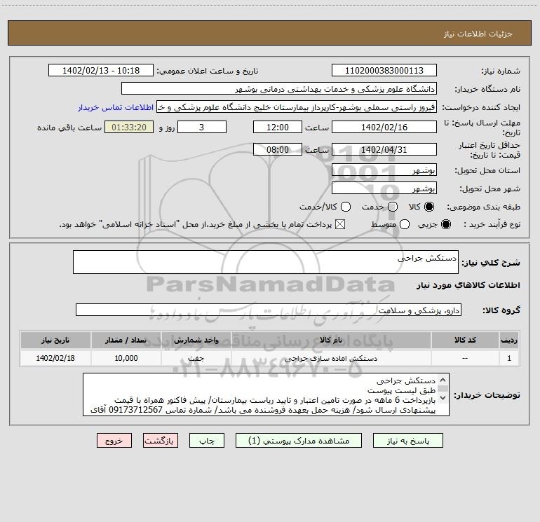 نام دستگاه خریدار:دانشگاه علوم پزشکی و خدمات بهداشتی درمانی بوشهر