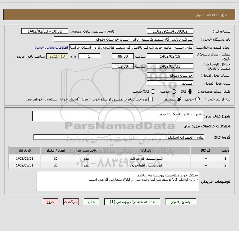 نام دستگاه خریدار:شرکت پالایش گاز شهید هاشمی نژاد استان خراسان رضوی