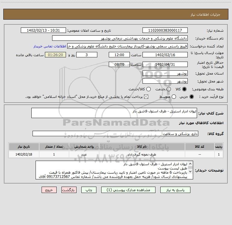 نام دستگاه خریدار:دانشگاه علوم پزشکی و خدمات بهداشتی درمانی بوشهر