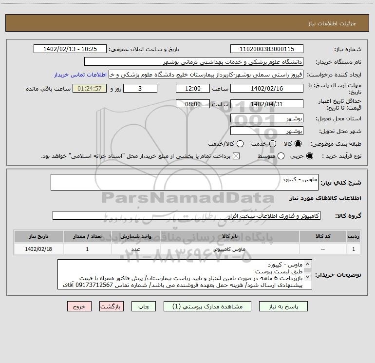 نام دستگاه خریدار:دانشگاه علوم پزشکی و خدمات بهداشتی درمانی بوشهر