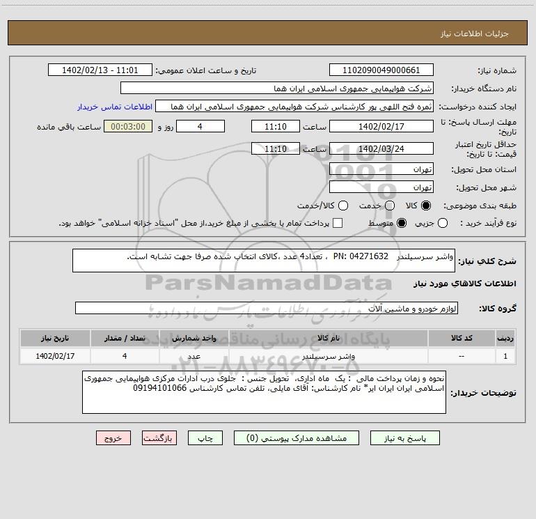 نام دستگاه خریدار:شرکت هواپیمایی جمهوری اسلامی ایران هما