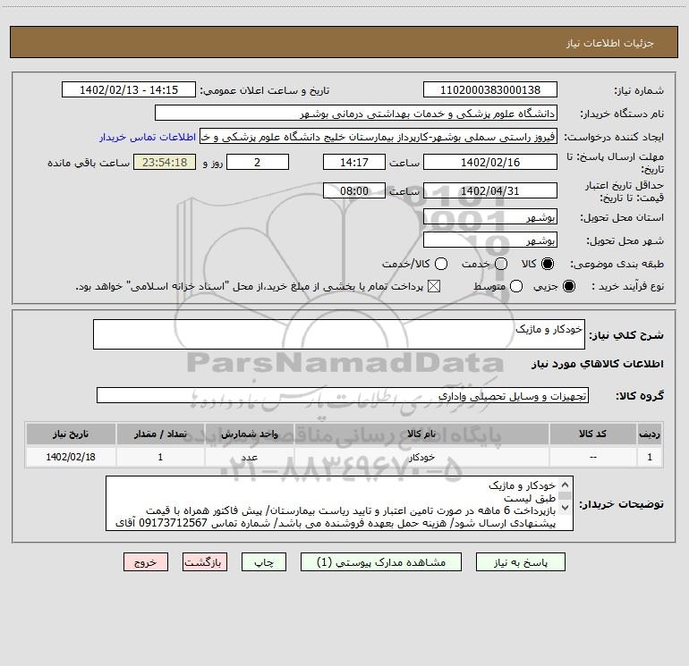 نام دستگاه خریدار:دانشگاه علوم پزشکی و خدمات بهداشتی درمانی بوشهر