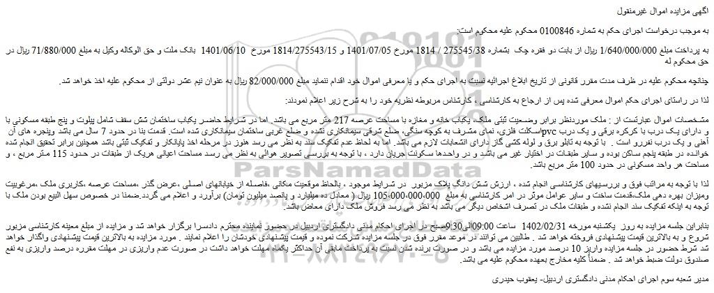1 مزایده فروش تعدادی از املاک 9816783 1404/08/17 new special payed سایر