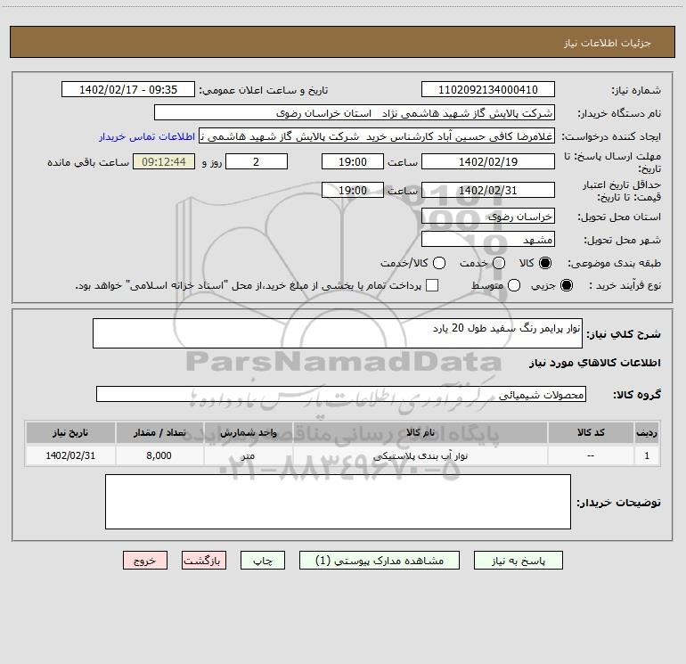 نام دستگاه خریدار:شرکت پالایش گاز شهید هاشمی نژاد استان خراسان رضوی
