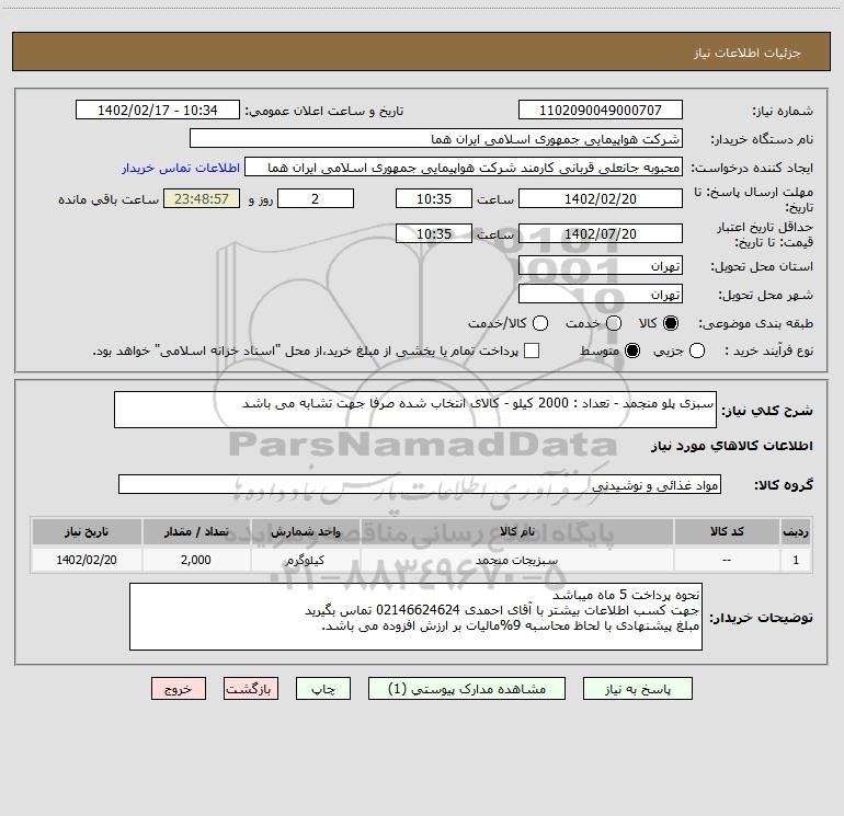 نام دستگاه خریدار:شرکت هواپیمایی جمهوری اسلامی ایران هما