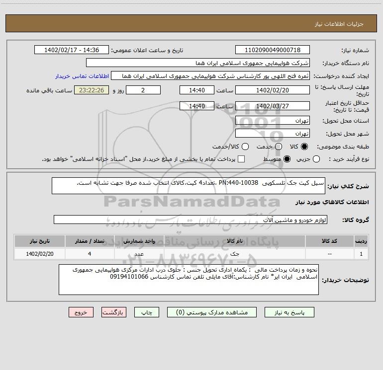 نام دستگاه خریدار:شرکت هواپیمایی جمهوری اسلامی ایران هما