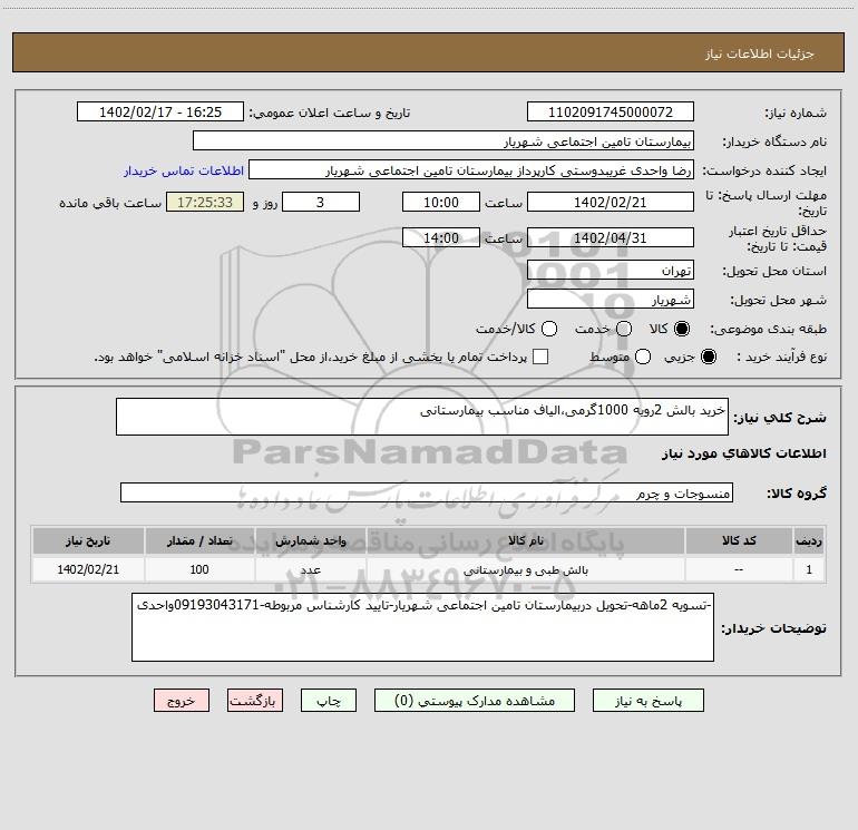 نام دستگاه خریدار:بیمارستان تامین اجتماعی شهریار