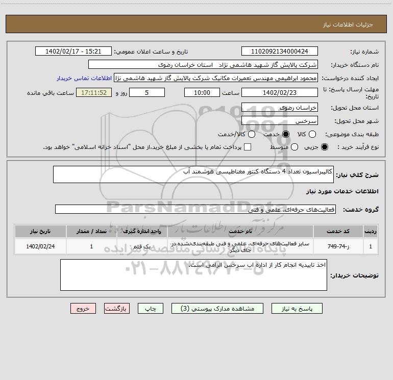 نام دستگاه خریدار:شرکت پالایش گاز شهید هاشمی نژاد استان خراسان رضوی