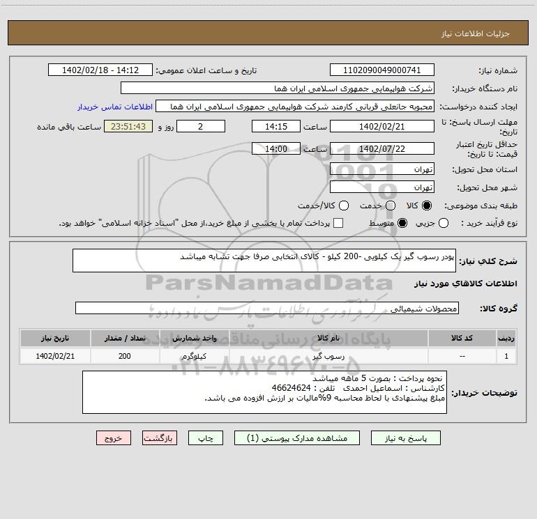 نام دستگاه خریدار:شرکت هواپیمایی جمهوری اسلامی ایران هما
