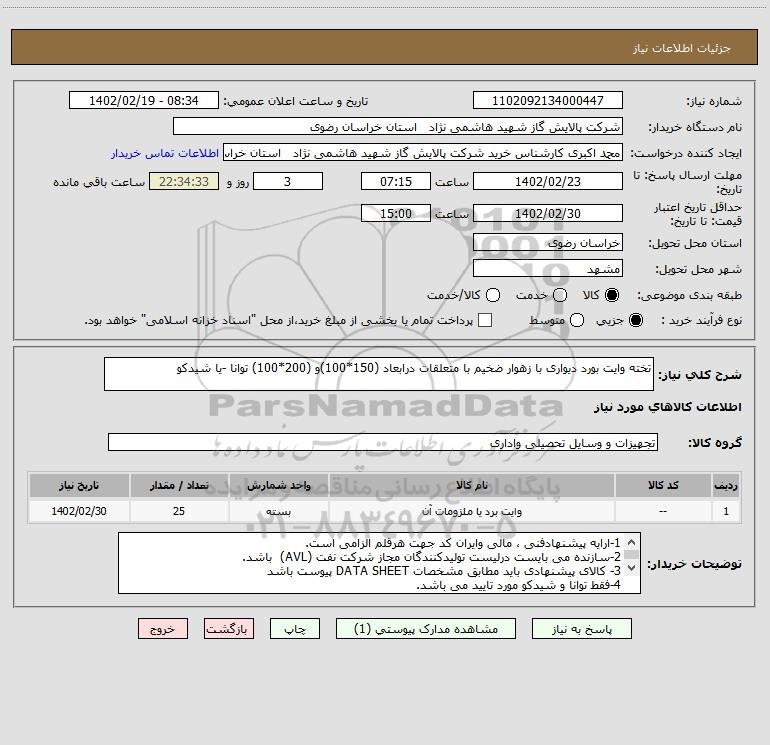 نام دستگاه خریدار:شرکت پالایش گاز شهید هاشمی نژاد استان خراسان رضوی